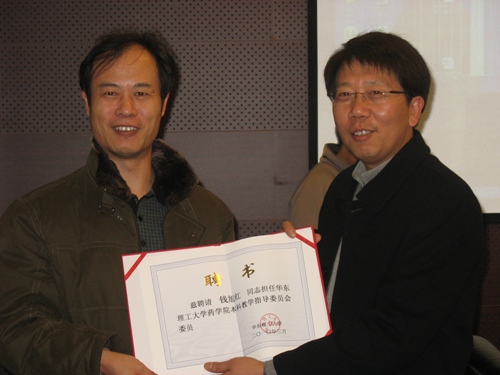 上海药物研究所副所长、校特聘教授蒋华良为各位委员一一颁发了聘任证书。随后,唐贇副院长主持,各专业负责人将正在制订的各专业2010年培养方案的最新进展向各位委员作了汇报,并听取各位委员的意见和建议。与会委员钱旭红教授、宋恭华教授、蒋华良教授、梁鑫淼教授、张彦涛博士等积极发言,对各专业的培养目标、培养要求、学位及学分要求、课程设置及教学执行计划等各个部分都进行了认真的讨论,提出了很多建设性、开拓性的意见。会后各专业负责人将根据各位委员的意见和建议,进一步修改和完善2010年的培养方案。