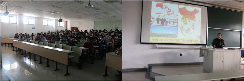 首先,杨老师将“十三五”规划与在座大学生的个人发展紧密结合,指出个人的专业发展只有与国家整体规划相结合,才能实现每个人的大学梦、成才梦和中国梦;其次,杨老师从政治、经济、文化和制度等方面,为同学们讲解了“十三五”规划的重点工程“一带一路”,通过“打乒乓”等比喻形象的说明了占有规则主导权的重要性;最后,杨老师为同学们讲述了一带一路的提出背景、发展规划和整体的战略布局,同学们在享受了丰富的知识和思想盛宴的同时,收获了满满的正能量,激发了在座同学们的爱国热情,从而更加坚定了为实现中华民族伟大复兴的信心和决心。
