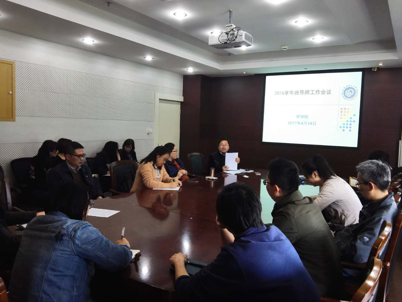 会议室召开了班导师工作会议,会议由教学副院长任国宾教授主持,各年级班导师和教务员都出席了会议。