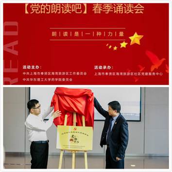 奉贤本科生党支部及海湾社区部分党员、入党积极分子参与了此次诵读会。王秋萍为活动做开场致辞,黄军华、李剑共同为“党的朗读吧”区域化党建项目揭牌。