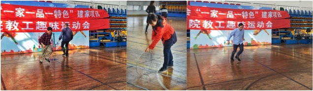 为了体现运动会的乐趣,本次活动分别设置了单人项目和团体项目。单人项目有飞镖、单人跳绳、单人颠排球、篮球投篮,团体项目有“三人四足”、带乒乓球接力、跳长绳、滚铁环。每个项目都有十余人报名参加,每一个比赛项目都是集锻炼、运动和趣味游戏为一体,既有个人能力的充分展示,也有团队协作水平的完美比拼。从运动会开始到结束,大家彼此加油、欢呼、喝彩,现场欢声笑语,此起彼伏。经过四个多小时角逐,本次趣味运动会圆满结束。