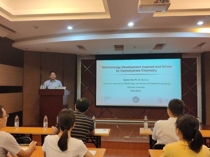 副院长、教授、博士生导师,国家优秀青年科学基金获得者钮大文教授于8月31日下午于实验十八楼315报告厅为华理师生做了题为“Methodology Development Inspired and Driven by Carbohydrate Chemistry”的名师讲坛学术报告。报告会由邓卫平教授主持。