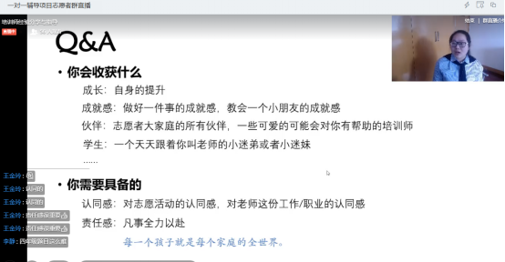 为了让“线上补习”更为专业,党支部主动联系学而思上海分校的资深讲师为志愿者开展线上集中培训及长期跟踪督导。为期两天的集中线上培训不仅涵盖了语文、数学、英语等基础学科,还引入了编程等热门创新科目。资深讲师们给志愿者传授讲课思路、分享“线上教学”实用技巧之余,还通过“试讲”的方式对参与活动的53名志愿者进行逐一考核和培训。并且在未来,他们还将以活动督导的身份继续与志愿者们保持长期联系,为“在线补习”中可能出现的包含学业、心理等方面在内的各种个性化问题提供长期咨询帮助。