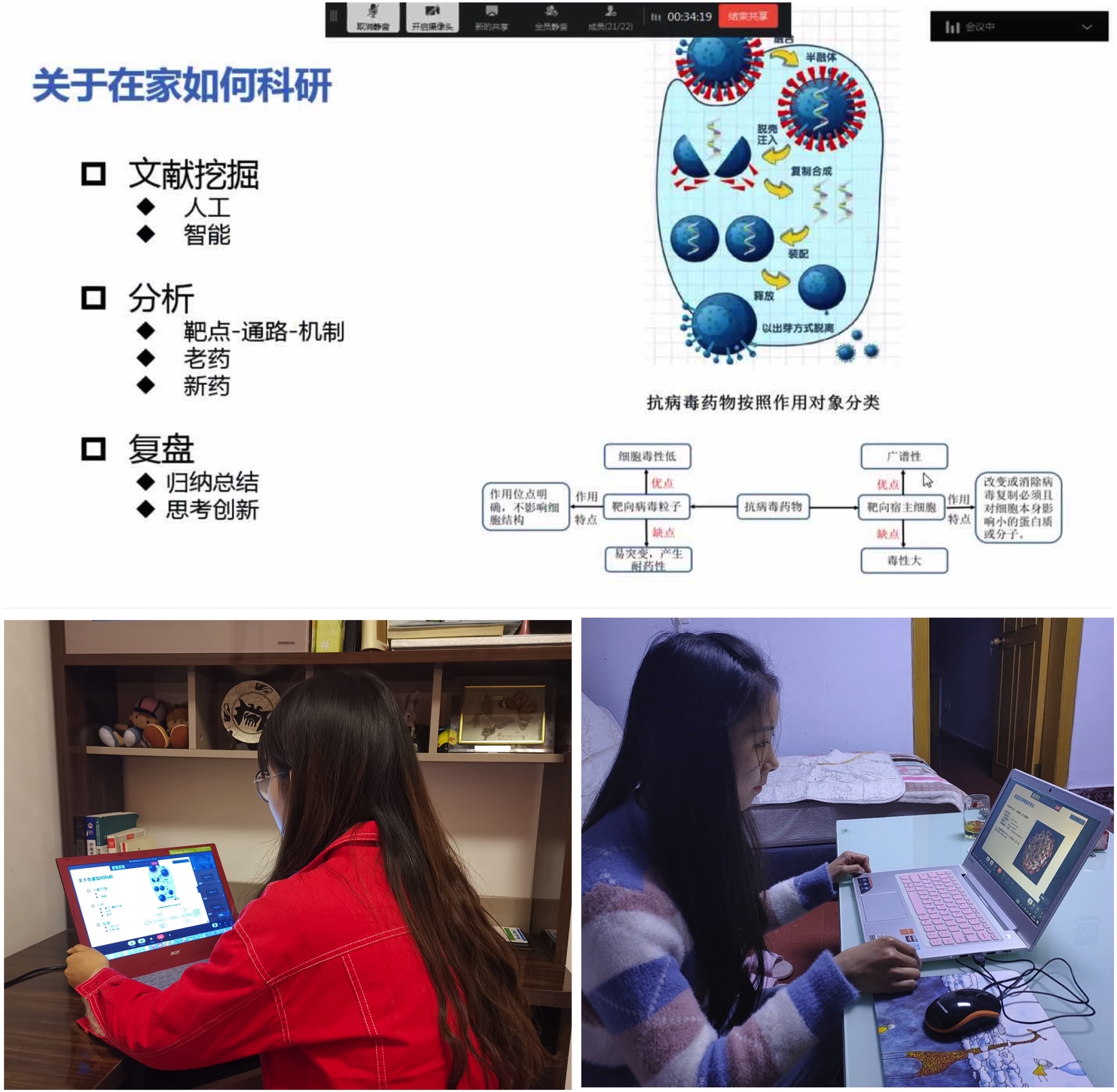 在科学防疫的同时,学生党员们时刻牢记自己作为一名学生的主业,“居家”期间也能合理安排自己的学习时间和任务,认真学习网课、总结归纳实验结果、制定后续实验计划、查阅资料夯实基础、阅读文献提升能力、在线上与老师和同学交流探讨,为之后的学习和实验打好基础。