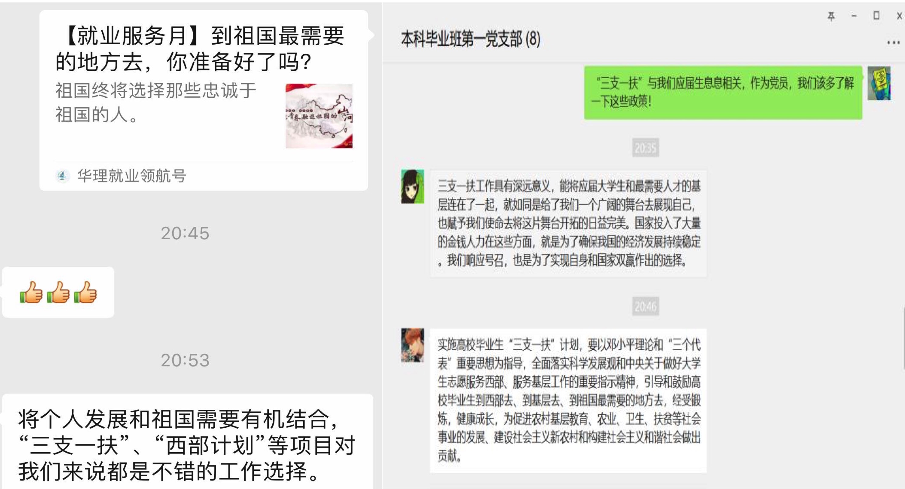 图片说明:毕业班党支部积极推动“三支一扶”、“西部计划”等项目