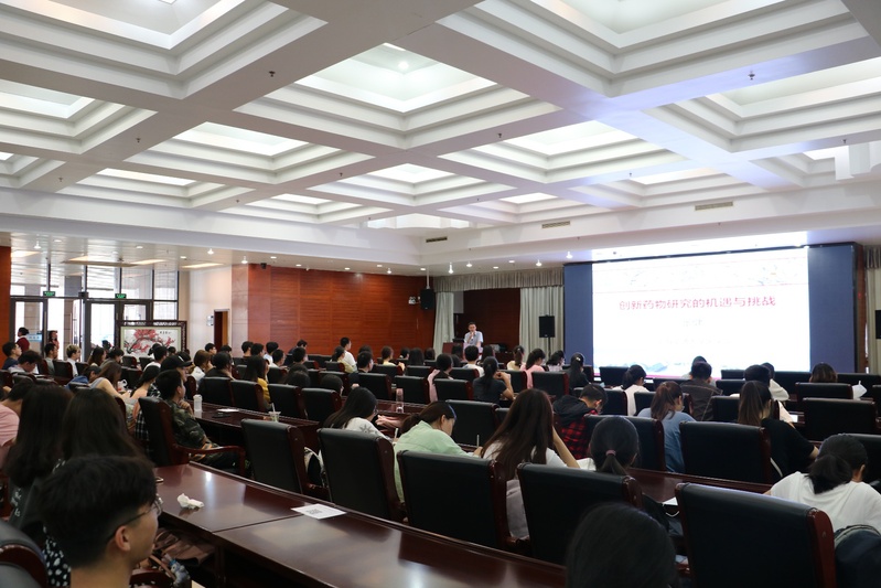 张健教授就国际创新药物发展的现状和趋势给同学进行了介绍,并指出尽管生物药物的开发是当前的研究热点,但是很长一段时间化学药物仍将在全球医药市场占据重要的地位。