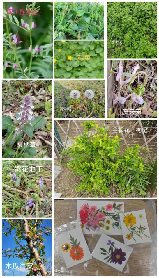 老师们的热烈反响和积极参与。各位老师在绵绵细雨中,寻找着校园里蓬勃生长的艾蒿、车前子、夏枯草、紫花地丁、金银花、枸杞和蒲公英等多种中药材植物;同时也看到了木瓜海棠和无患子等乔木植物一改秋冬的萧条,变得花团锦簇、生机盎然。活动中,各位老师还将采集到的各式花朵制作成了美丽的标签。虽然本次活动恰逢春雨绵绵,但是一场说走就走的校园行,让参加本次活动的教师职工收获一个惬意放松的下午,可以帮助他们用饱满的热情、全身心的继续投入到教学工作中去。