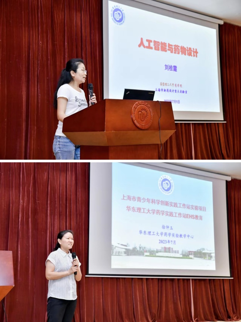 药物科学系教授刘桂霞作了题为“人工智能和药物设计”的学术报告,为同学们科普人工智能技术对新药研发带来的影响及药物设计面临的难题和挑战。药学实验教学中心副主任徐仲玉老师作实验安全教育讲座,从EHS教育的角度强调了实验室安全注意事项,为同学们安全有序地开展实验打下坚实基础。