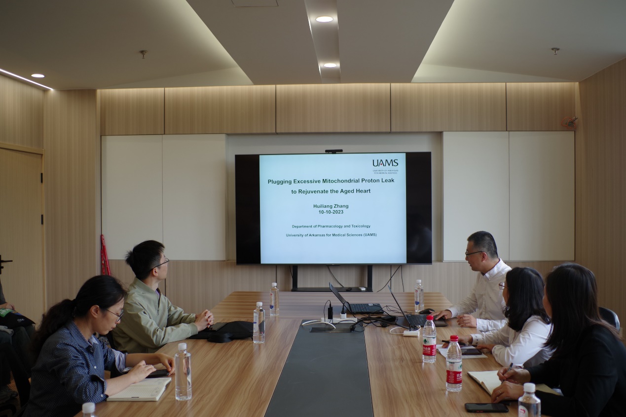 师生作题为Plugging Excessive Mitochondrial Proton Leak to Rejuvenate the Aged Heart的学术报告。药物科学系黄瑾教授主持了报告会。