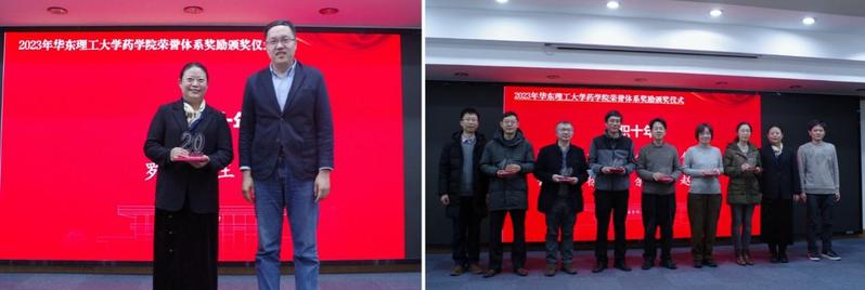 倪炜、王越、邵旭升和张敏为入职华理30年、20年和10年的教师颁发了纪念牌,感谢他们长期以来为国产自拍