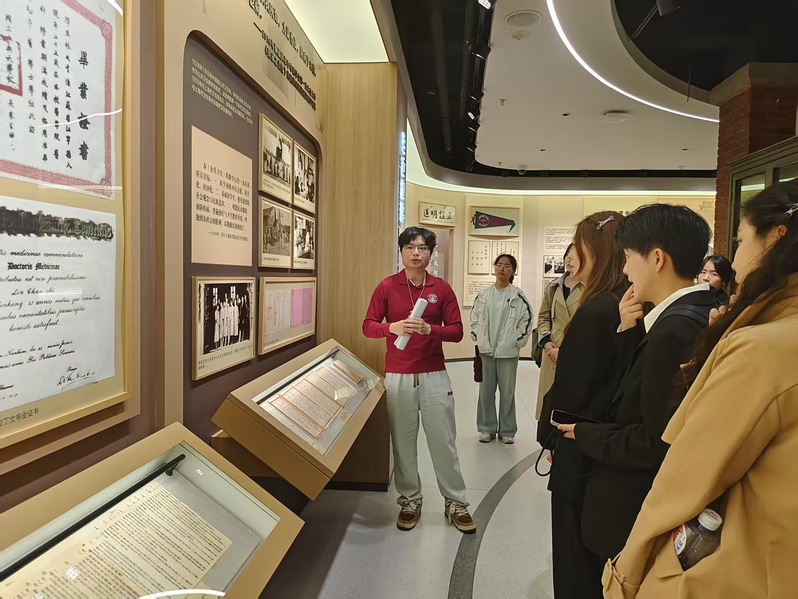 院史馆,学习创办人颜福庆先生的医学教育思想。同学们驻足在百年显微仪器、手写科研笔记等珍贵展品前,感悟“惟君建树忙”的实干精神与“科技变革中坚守初心”的科学精神。