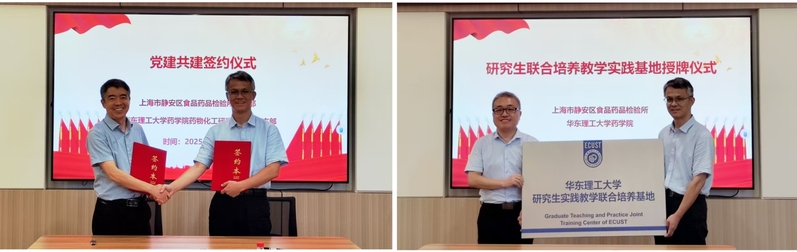 与上海市静安区食品药品检验所在徐汇校区实验十八楼418会议室举行党建共建签约暨研究生联合培养教学实践基地授牌仪式。静安区食品药品检验所党支部书记、所长余岳林,副所长陈斌,办公室主任胡昭君,国产自拍