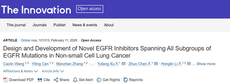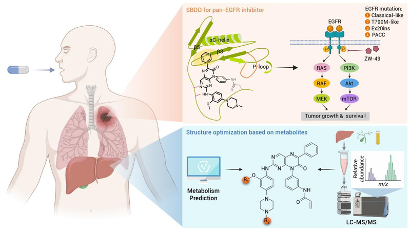 研究团队,在Cell旗下综合性学术期刊《The Innovation》(IF = 25.7)发表题为“Design and Development of Novel EGFR Inhibitors Spanning All Subgroups of EGFR Mutations in Non-small Cell Lung Cancer”的研究论文。该研究发现ATP结合域背后的保守疏水亚口袋,据此设计了泛EGFR抑制剂ZW-49,可强效抑制所有EGFR突变亚型(经典型、T790M 型、Ex20ins、PACC),且安全性优异,目前已完成Ⅰ期临床试验(CTR20212743),为NSCLC精准治疗开辟新路径。