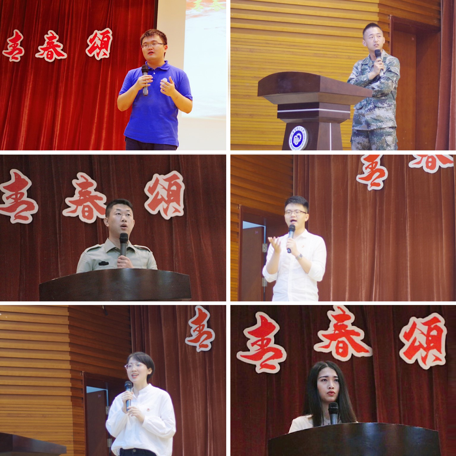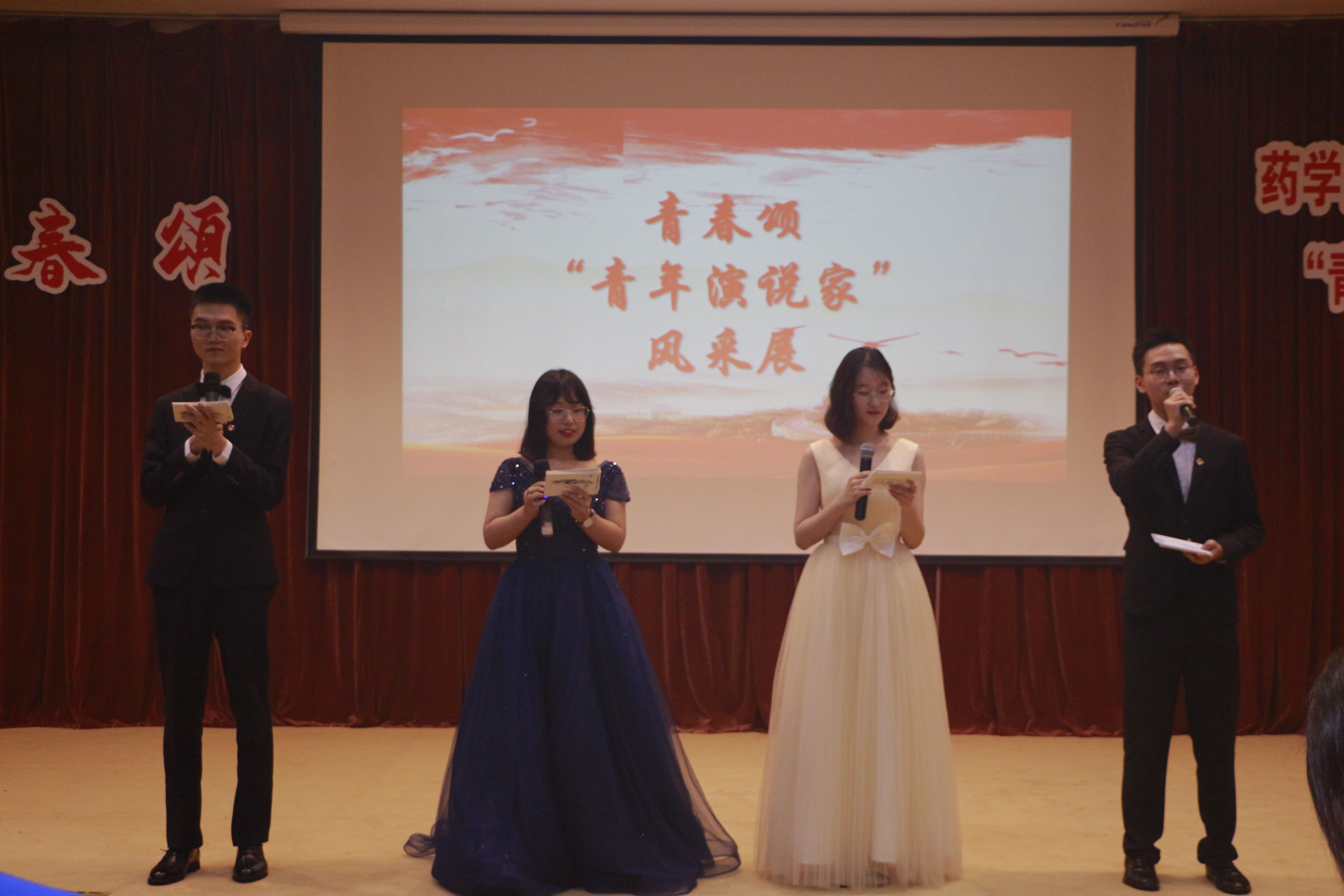 青年教师和学生在内的六位榜样人物,结合自身经历分享自己的青春故事。青年教师徐缓以如何步入、坚持科研之路为线,分享了自己的科研理想;退伍军人2017级药物制剂专业学生单兴钱,以自己在担任消防兵期间发生的三个故事为大家生动解读了青春报国的真谛;退伍军人2016级制药工程专业学生张涛,为大家讲述了毕业后毅然放弃上海安稳工作,赴藏区服务的好学长李凯的故事;马慧君、祝晨宇、陈佳莹三位同学也通过自身经历分享了在日常学习生活中如何练就过硬本领、如何砥砺奋斗、如何锤炼品德。