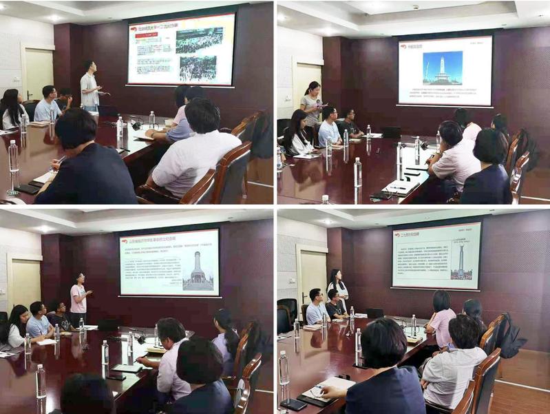 会上,支部党员选取了湖北省武汉市二七烈士纪念碑、北京市一二·九纪念碑、朝鲜平壤市中朝友谊塔及山东省临沂市华东革命烈士纪念塔等四座纪念碑碑文为学习素材,感受先烈们“国家兴亡,匹夫有责”的爱国情怀和“捐躯赴国难,视死忽如归”的赤子之心;学习从大革命时期到山东全境解放的25年间,沂蒙儿女“吃苦耐劳、勇往直前、永不服输、敢于胜利、爱党爱军、开拓奋进、艰苦创业、无私奉献”的伟大沂蒙精神。在交流环节中,大家动情地讲述了自己家乡的党史故事和先烈事迹,有同学讲述了为解放家乡而献出宝贵生命的红军战士的故事,有同学讲述了一腔热血捍卫真理的青年学生的故事等,烈士们坚定的信仰、英勇的品质令人动容。