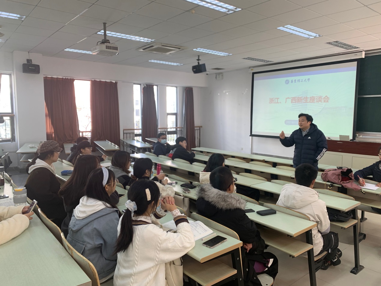 本科招生宣传效果,加强浙江、广西壮族自治区本科招生宣传工作组与两省在校学生之间的联系,以进一步优化本科招生宣传工作,2021年11月8日,浙江、广西壮族自治区本科招生宣传工作组在奉贤校区C202教室召开了2021级本科新生代表座谈会。