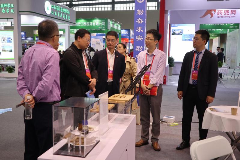 在本次全国药材药品交易会展出西归、猪毛菜等多项中药代表性成果及它们在促健康长寿与美容增发方面的新用途研究。展位现场吸引了多位参会领导、国内高校的专家学者、企业高管,与国产自拍
