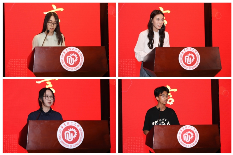 2020级研究生冯紫燕和2021级本科生彭施宇同学作为在校学生代表,分享了自己的成长历程,建议学弟学妹们保持初心、合理规划时间、积极参与团队合作、敢梦敢闯,逐梦远航。2024级研究生张子悦和本科生孙瑞国作为新生代表发言,纷纷表示将秉持“勤奋求实、励志明德”的校训精神,锐意进取,踔厉奋发,期待和同学们携手并进,共同书写精彩篇章,为国家发展贡献青春与智慧。
