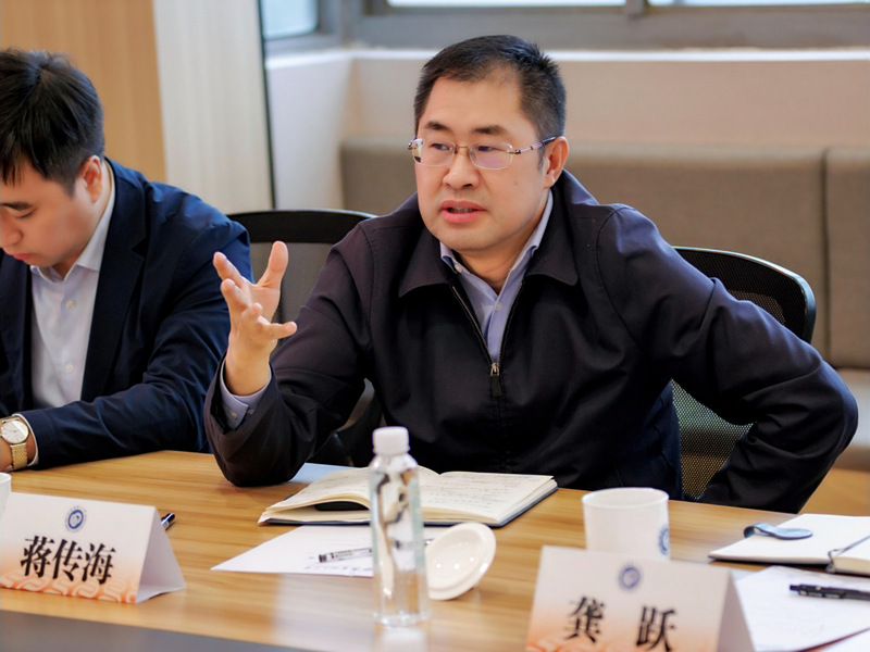 党政工作汇报,与班子成员座谈交流。校党委副书记、纪委书记龚跃陪同调研。