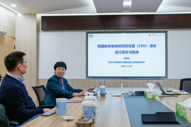 师生做“我国碳青霉烯耐药阴性菌(CRO)感染的流行现状与挑战”的学术报告。报告会由杨友教授主持。