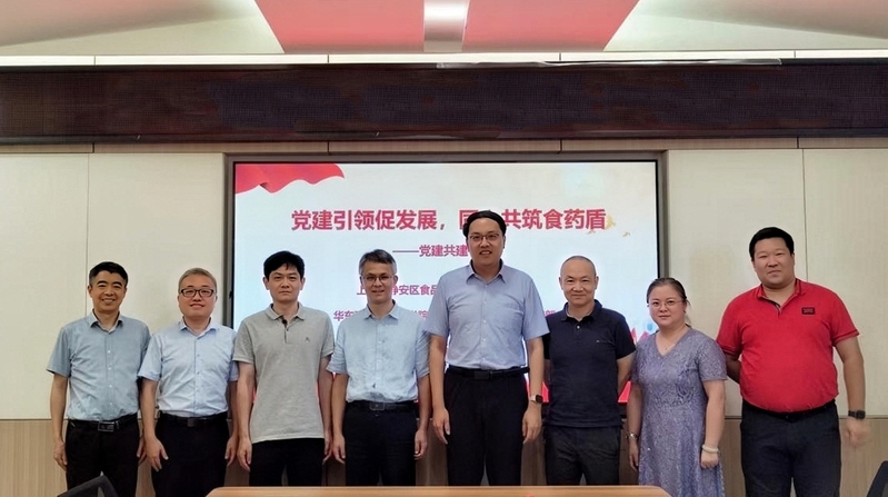 与上海市静安区食品药品检验所在徐汇校区实验十八楼418会议室举行党建共建签约暨研究生联合培养教学实践基地授牌仪式。静安区食品药品检验所党支部书记、所长余岳林,副所长陈斌,办公室主任胡昭君,国产自拍