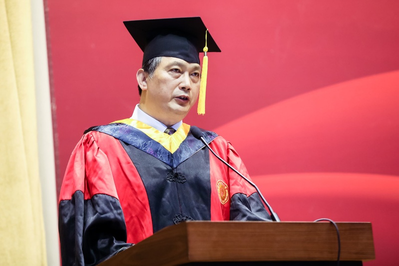 The leaders of our school, the members of Degree Assess Committee, and the directors of each department turned the tassels and issued graduation scrolls to graduates in the ceremonies.